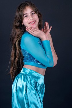 Elle commence le piano peu avant l’âge de 7 ans, puis le chant un an plus tard. Elle suit aujourd’hui sa 5e année de formation musicale et se produit régulièrement sur scène depuis l’âge de 8 ans, à raison de deux spectacles par an avec son école de musique.